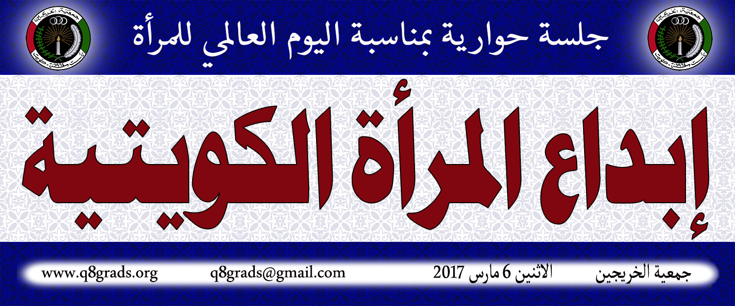 بمناسبة اليوم العالمي للمرأة الذي يصادف 8 مارس من كل عام، تقيم جمعية الخريجين الكويتية جلسة حوارية حــول " إبـداع المـرأة الكــويتيـة "